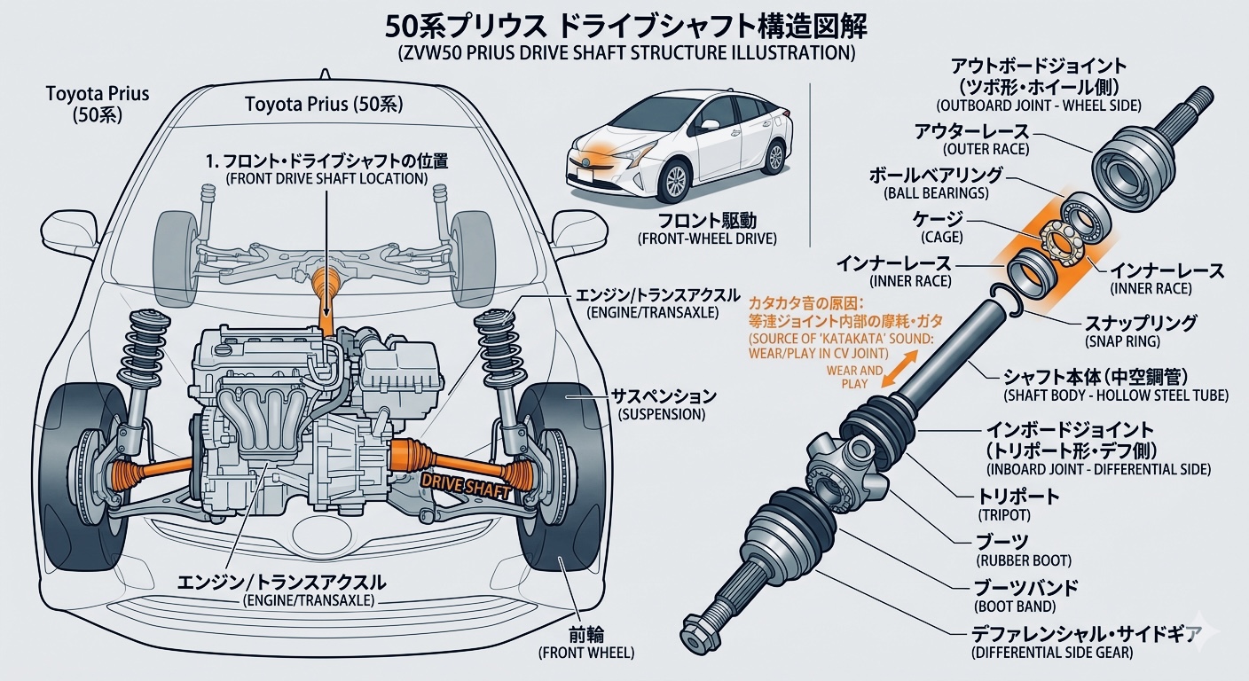 プリウスは静かだからこそ、異音に気づきやすい反面、気になりやすい車でもあります。もし同じような“カタカタ音”を感じている50系オーナーさんがいたら、早めに見ると安心です。