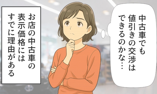 もともとは「一物一価」といって、中古車は同じ車種でも年式や走行距離、程度が1台ずつ異なります。仕入額がそれぞれ違うので、近年では表示価格から値引きをする中古車店は少なくなってきました。