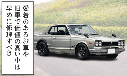 長年乗っていて愛着がある、また旧車と呼ばれるようなお車で、どうしても手放したくないお車であれば、修理代の高い安いを問わず、ひどくなる前に早めに修理しましょう。