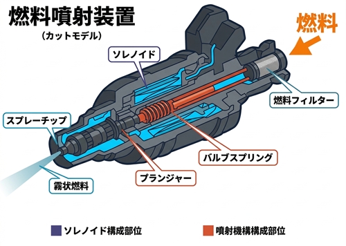 インジェクターは燃料を送る装置なので、症状的にはアイドリング不良、加速不良、燃費の悪化などにつながり、時には燃料臭まで発生させることもあります。