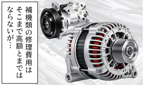 修理費用の目安は、プーリー程度であれば比較的安価に3万円前後で済むこともありますが、エアコンコンプレッサー本体の交換などになれば、補機類なども含めて10万円以上と高額な修理になることもあるようです。