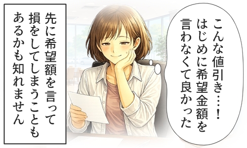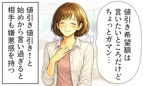 もし値引き希望額が高すぎれば嫌悪感を抱かれ、低すぎれば本来の値引きを取り逃して大損しましまう可能性があります。