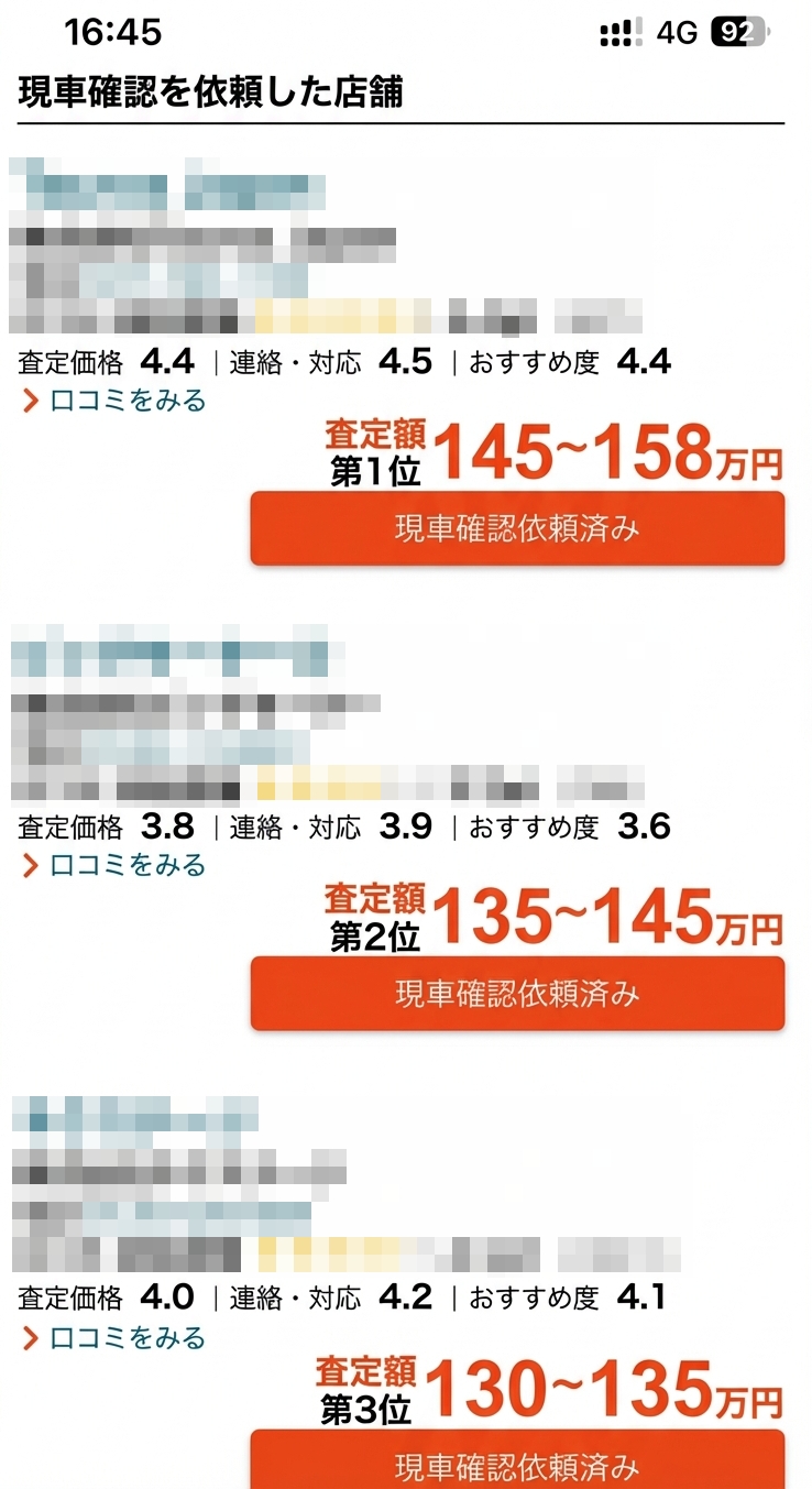 4軒目の店に聞くと、32万円は難しいと言われたので丁重にお断りし、一番高い2軒目で決めたのは言うまでもありません。