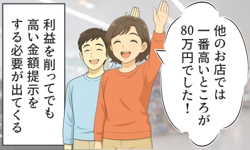 車を買うお店だけで下取りを進める場合、お店は他社と競う必要がありません。